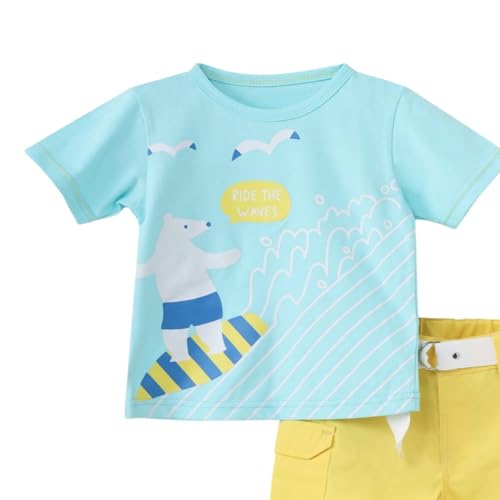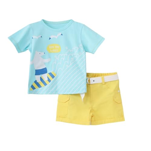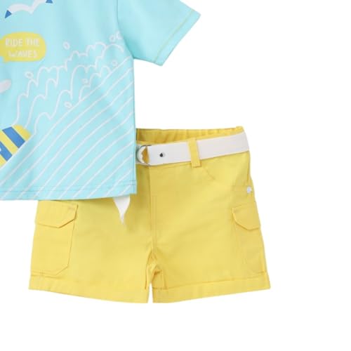 SIKA - سيكا طقم للاولاد مكون من 3 قطع مكون من تيشرت نصف كم وشورت بحزام وحزام من 3 قطع (عبوة من قطعة واحدة)