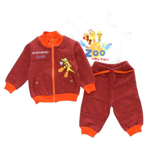 SIKA - سيكا بيجامة قطن باكمام طويلة وتيشرت نصف كم وبنطلون باشكال مطرزة للاولاد - متعدد الالوان - 3 شهور