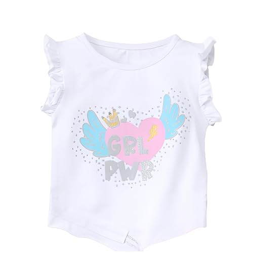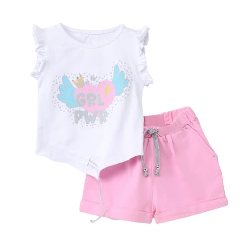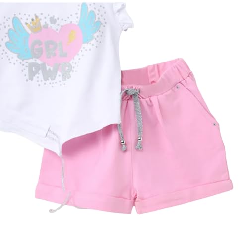 SIKA - طقم قطن للبنات من سيكا، مكون من 2 قطعة تيشرت بدون أكمام وشورت بطباعة قلب، أبيض ووردي، مقاس 2 سنة