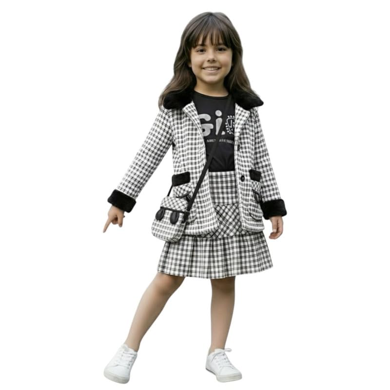 SIKA - سيكا جاكيت باكمام طويلة وتيشيرت باكمام طويلة وتنورة وشنطة للبنات، جاكيت باكمام طويلة وتنورة وشنطة (عبوة من قطعة واحدة)