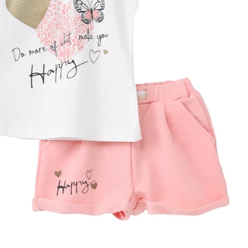 SIKA - طقم تيشرت نصف كم وشورت بطبعة كلمة «happy» للبنات من سيكا، من 2 قطعة