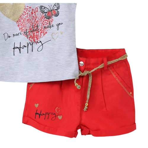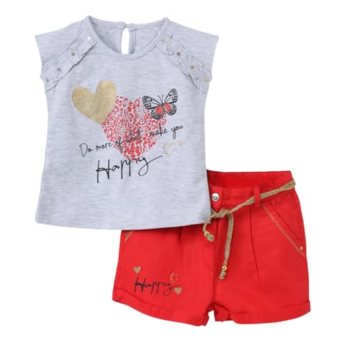 SIKA - طقم للبنات من 2 قطعة من تيشيرت نصف كم وشورت بطبعة كلمة «Happy» من سيكا