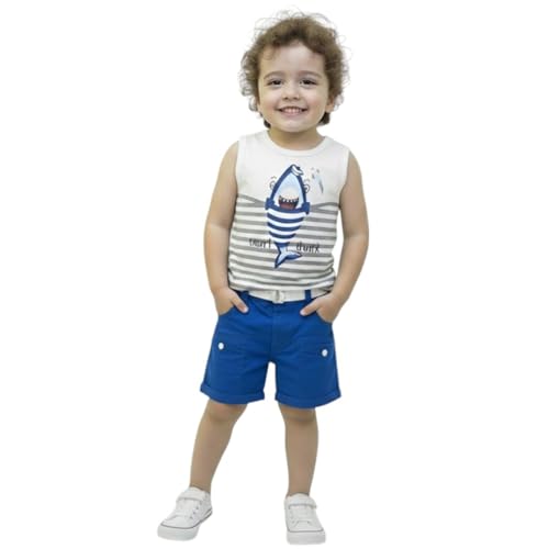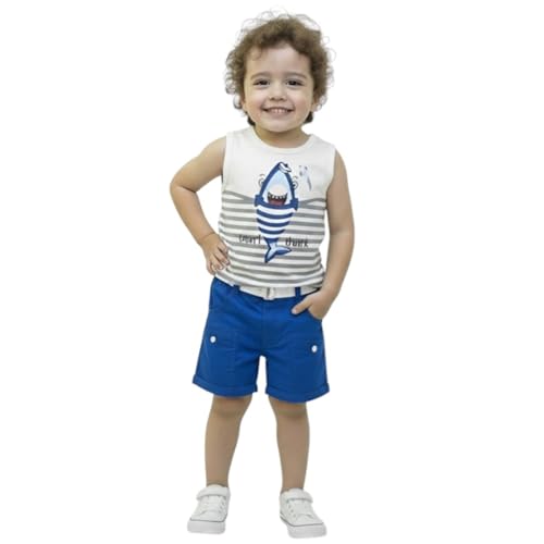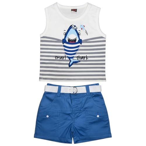 Sikaaa - تيشرت بدون اكمام للاولاد من سيكا، شورت وحزام مطبوع عليه سمكة قرش بدون اكمام، شورت وحزام (عبوة من قطعة واحدة)