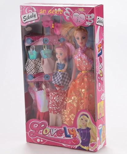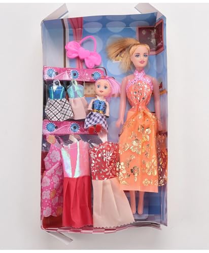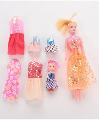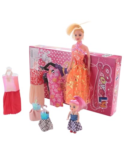 Generic - لعبة عروسة واكسسوارات، لعبة عروسة كبيرة وصغيرة مع فساتين وشنطة للعب التظاهري للأطفال من سن 3 سنوات فما فوق من سيكالي