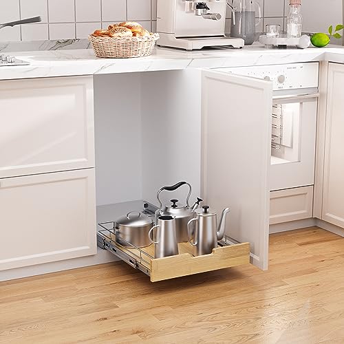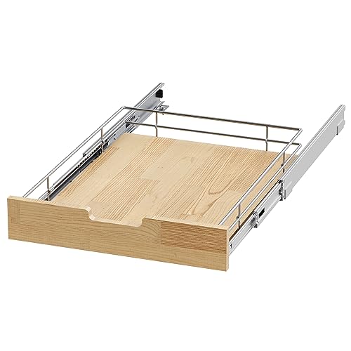 Sikarou - منظم دولاب قابل للسحب من سيكارو، رف منزلق شديد التحمل، سلة من الخشب والأسلاك، درج سحب للمساحة تحت حوض المطبخ والمخزن والحمام، مقاس 35.56 × 53.34 سم