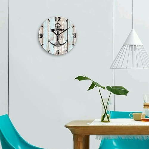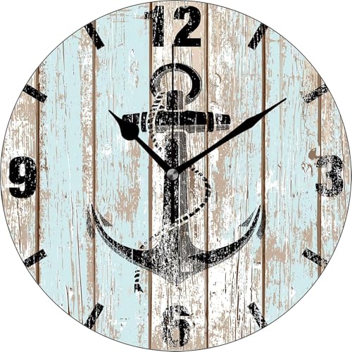 Generic - ساعة حائط صامتة بدون صوت تكتكة تعمل بالبطارية، ساعة حائط كلاسيكية كبيرة 32 سم لديكور غرفة المعيشة والمزرعة، ساعة حائط دائرية بتصميم مرساة بحرية خشبية