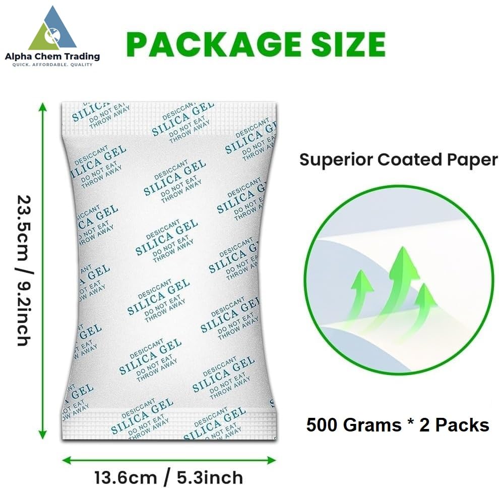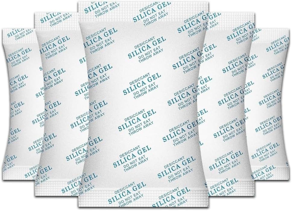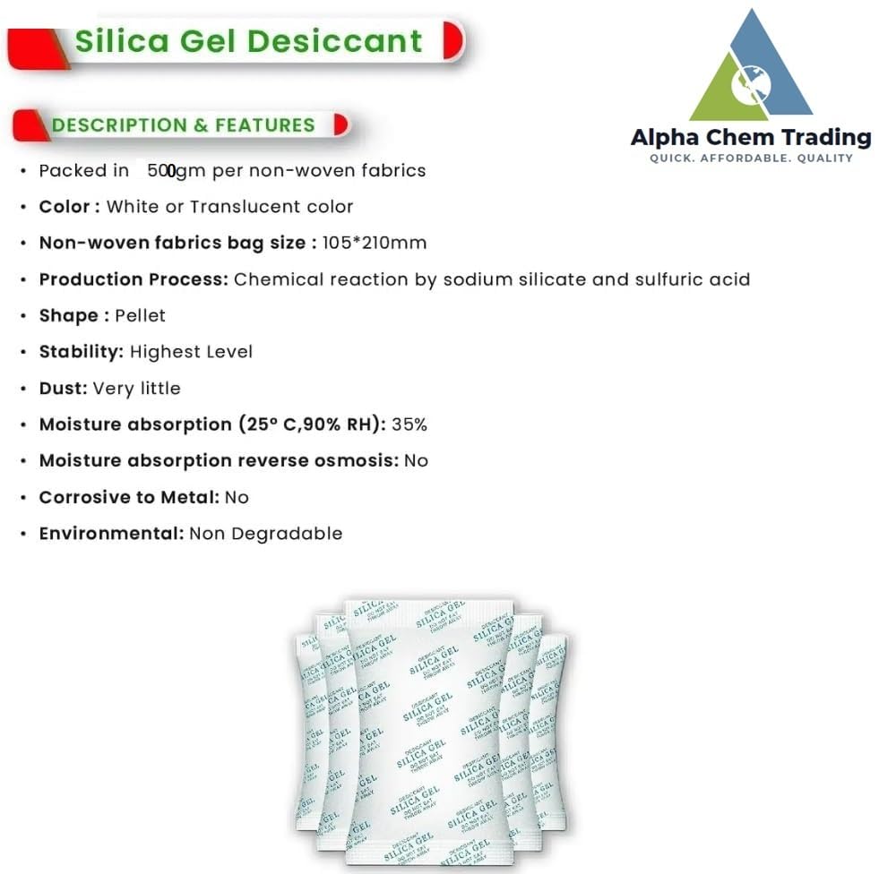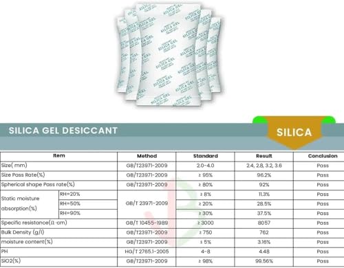 - السعة: أكياس من جل السيليكا المجفف من الدرجة الصناعية بوزن 500 جم، يمتص الرطوبة الزائدة والرطوبة بشكل فعال من الأماكن المغلقة.