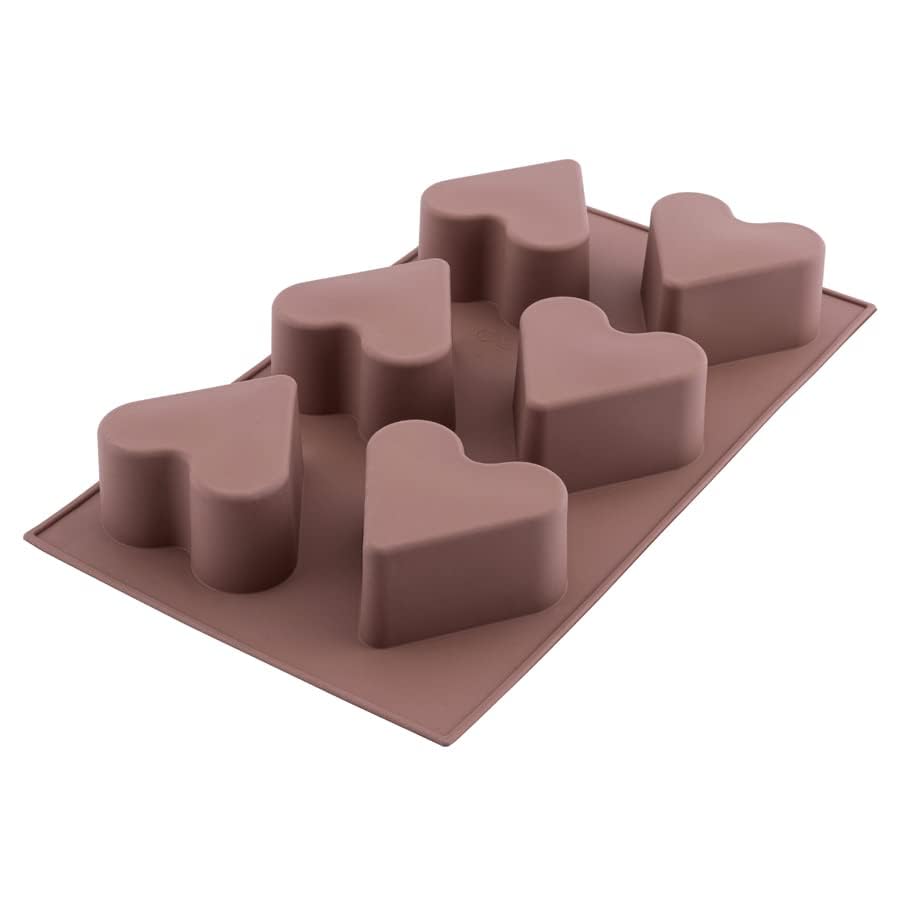 Silicolife - قالب كيك وبسكويت بشكل قلب يتسع لـ 6 قطع من سيليكولايف، العرض: 170 ملم، الطول: 300 ملم، الارتفاع: 40 ملم، ألوان متنوعة