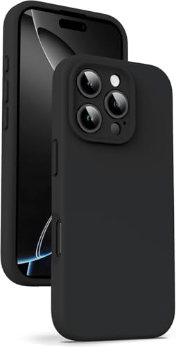 Generic - جراب حماية سحري من السيليكون الناعم مع بطانة من المايكروفايبر وواقي للكاميرا لموبايل آيفون 16 برو ماكس 6.7 بوصة (أسود)