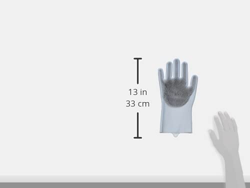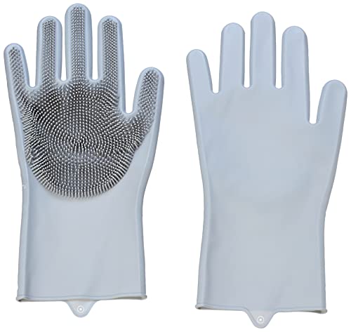 Spaceshoop - زوج قفازات سيليكون مع ليفة للغسيل للتنظيف- لون رمادي