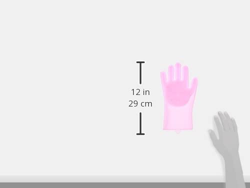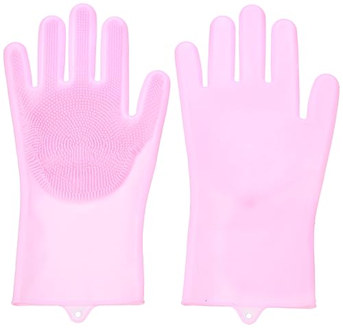 Spaceshoop - زوج قفازات من السيليكون مع ليفة غسيل للتنظيف- بلون بينك