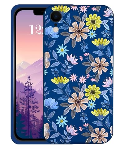 Generic - جراب ناعم سيليكون ببطانة من الألياف الدقيقة مع طباعة زهور ثلاثية الأبعاد لموبايل آبل آيفون اكس ار (زهور في المحيط)