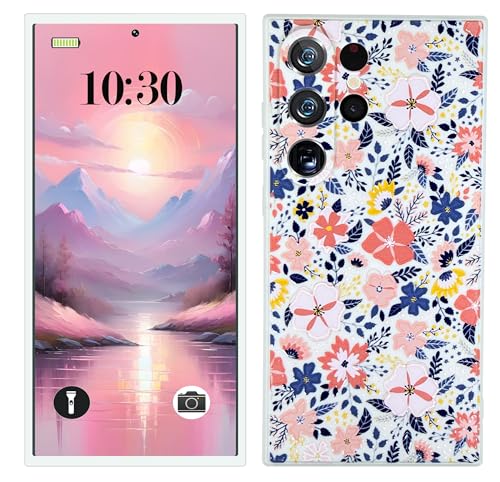 Generic - جراب ناعم من السيليكون ببطانة من المايكروفايبر مع طباعة زهور ثلاثية الابعاد لموبايل سامسونج جالاكسي S24 الترا 5G (زهور مبهجة)