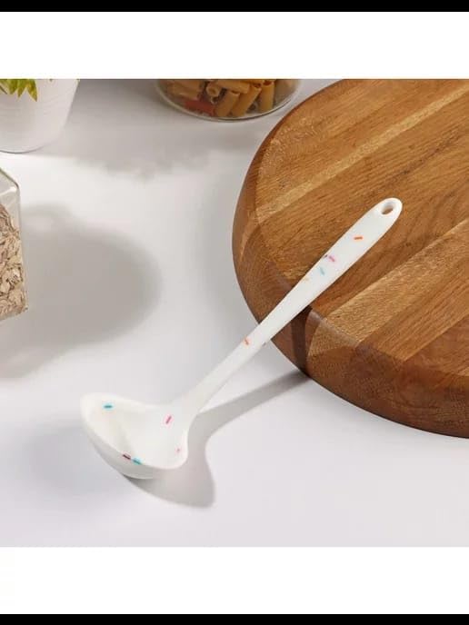 Generic - مغرفة شوربة سيليكون بمقبض بتصميم رشات للمطبخ من قطعتين - متعددة الالوان