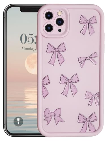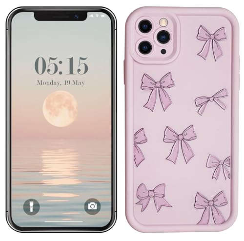 Generic - جراب من السيليكون والبولي يوريثين الحراري لحماية الكاميرا مع طباعة مبهجة ثلاثية الابعاد لموبايل ابل ايفون 11 برو ماكس (فيونكة وردية)