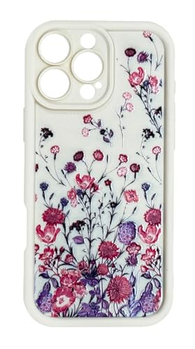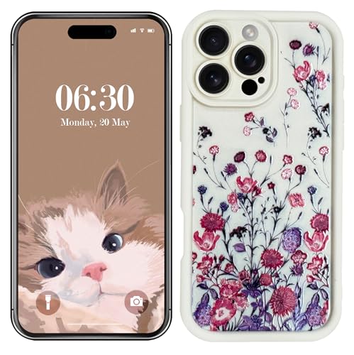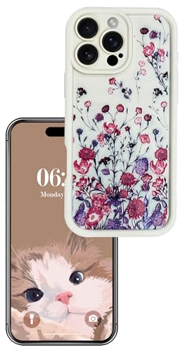Generic - جراب حماية من السيليكون والبولي يوريثين المقاوم للحرارة لحماية الكاميرا مع طباعة مبهجة ثلاثية الأبعاد لموبايل آبل أيفون 16 برو 6.1 بوصة (زهور باللون البيج)