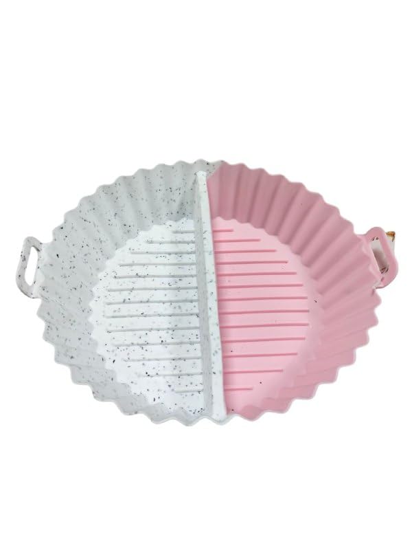 Spaceshoop - بطانة سيليكون للمقلاة الهوائية، مقسمة إلى قسمين، مقاس 22 سم، مقاومة للحرارة، بطانة خبز مقاومة للحرارة (وردي)