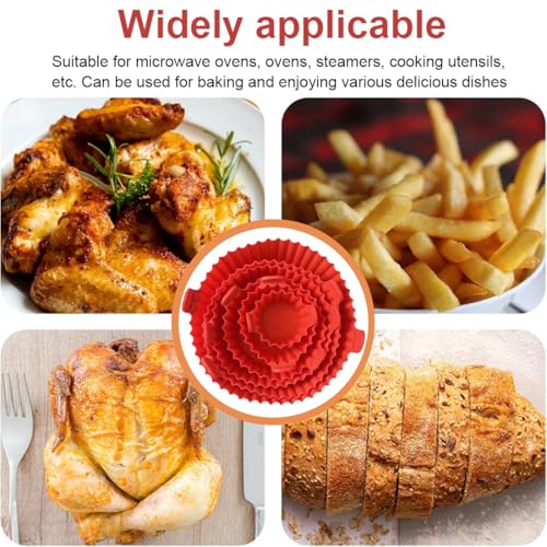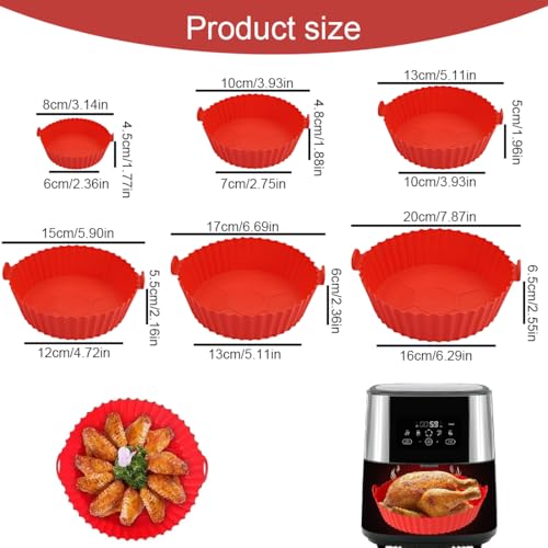 - 6 أحجام مختلفة من صواني المقلاة الهوائية المصنوعة من السيليكون مناسبة للأطعمة بأحجام مختلفة، يمكنك قلي الأطعمة المختلفة في وقت واحد، مما يوفر وقتك وطاقتك.