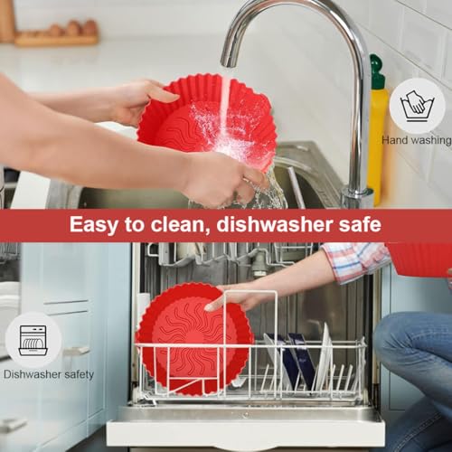 - تتميز المقلاة الهوائية بسطح أملس ولا تمتص الزيت أو الأوساخ، لذلك فهي سهلة التنظيف للغاية. ببساطة امسحها بلطف بقطعة قماش مبللة أو اشطفها بالماء لجعلها تبدو وكأنها جديدة. يمكن غسل المقلاة الهوائية المصنوعة من السيليكون في غسالة الصحون وإعادة استخدامها بعد التنظيف.