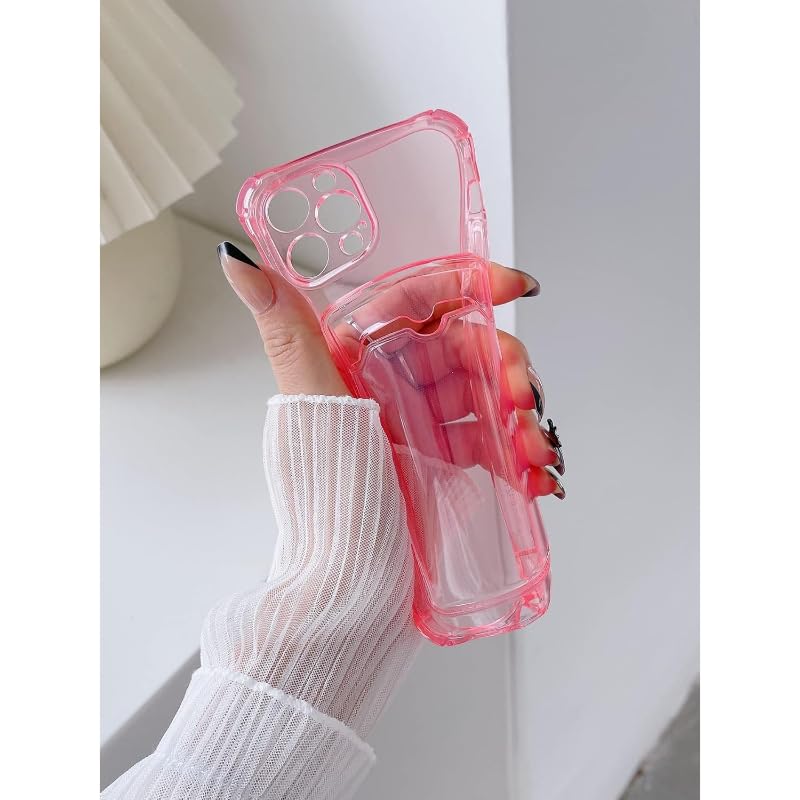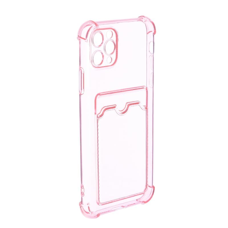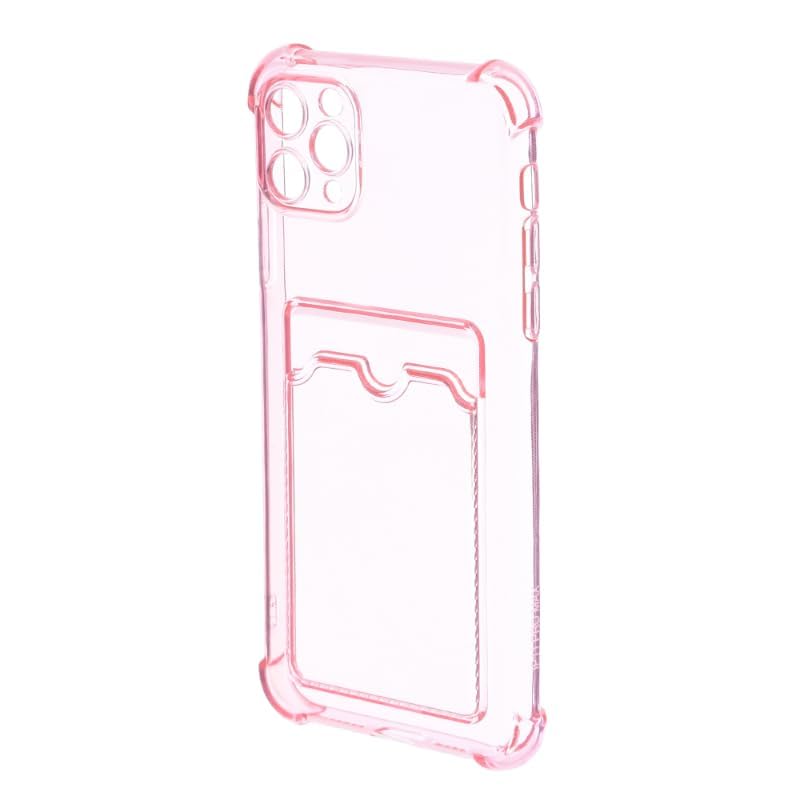 Generic - جراب حماية خلفي سيليكون مع جيب وحواف أمان لموبايل ايفون 11 برو ماكس 6.5 - لون بينك شفاف