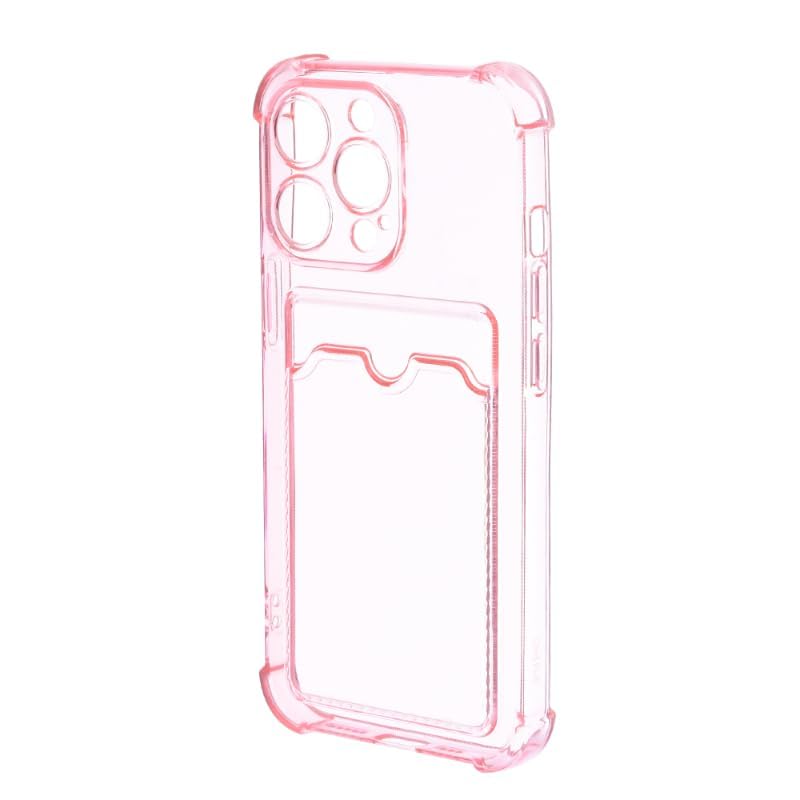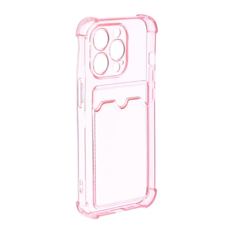 Generic - جراب حماية خلفي سيليكون مع جيب وحواف لموبايل ايفون 13 برو 6.1 بينك شفاف