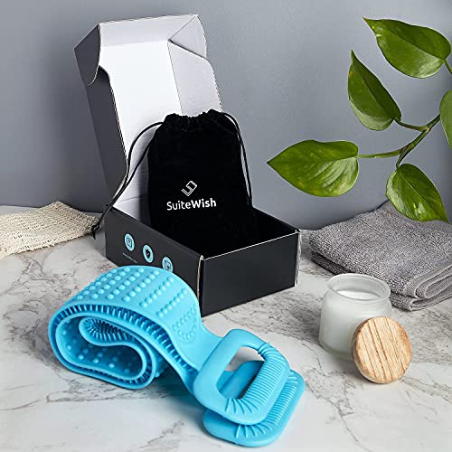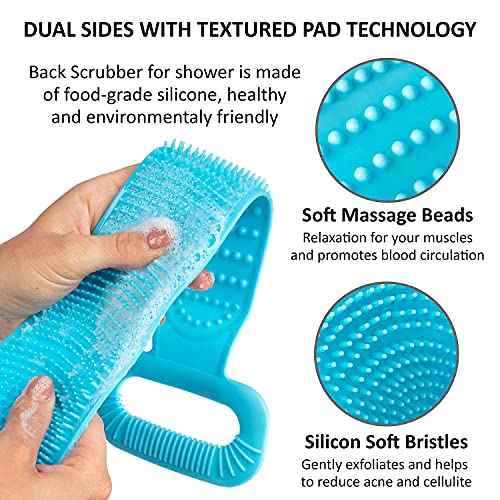 SUI - اداة تنظيف الظهر من السيليكون للاستحمام - حزام تنظيف وتقشير الظهر لحب الشباب للرجال والنساء وكبار السن - ليفة تقشير بمقبض طويل للغاية للاستحمام - سهلة الاستخدام