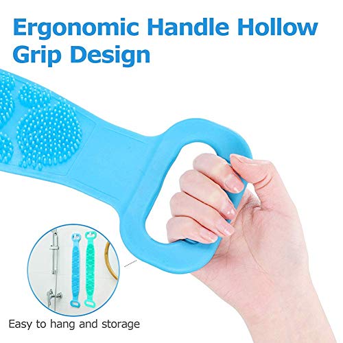 infocal - جهاز تنظيف الظهر من السيليكون ، فرشاة الجسم الطويلة للرجال والنساء ، فرشاة تنظيف الجسم على الوجهين ، تستخدم للتقشير والتدليك ، فائقة النعومة ، تنظيف عميق ، مناسبة للأولاد والبنات والأطفال