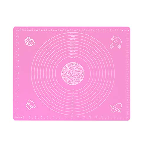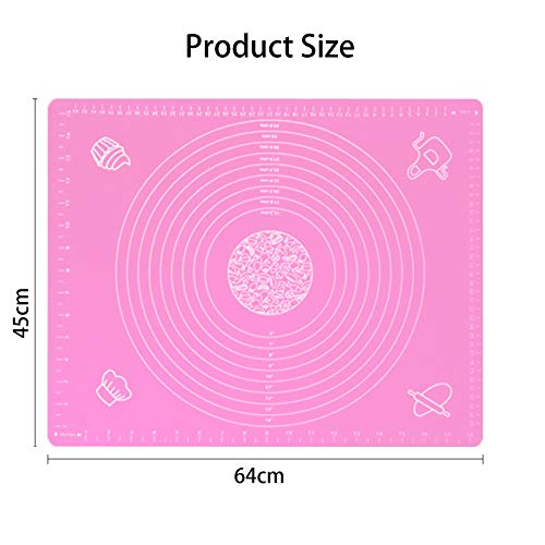 Spaceshoop - حصيرة خبز من السيليكون غير لاصقة سميكة للغاية من السيليكون مع مقياس، حصيرة خبز المعجنات، حصيرة المعجنات الفوندان، وسادة العجين، ملحقات الخبز 45 × 64 سم، اداة (بينك)