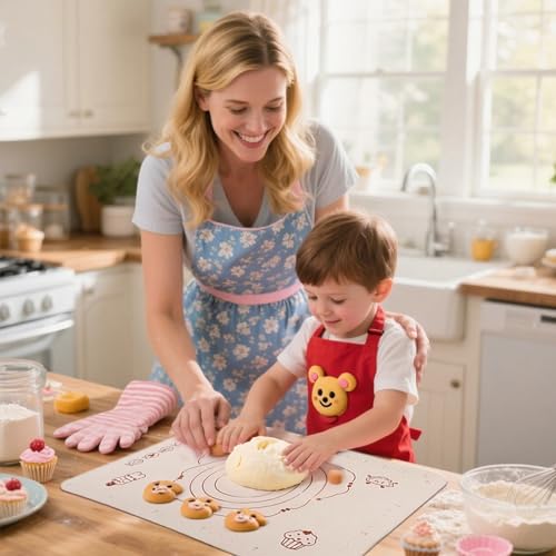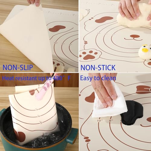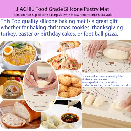 JIACHIL - حصيرة خبز من السيليكون بقياسات، حصيرة معجنات غير قابلة للانزلاق وغير لاصقة للعجين والمعجنات والخبز والكوكيز والبيتزا والفوندان والمعكرونة