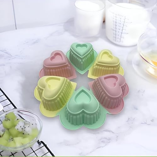Generic - قالب خبز سيليكون - قالب كيك وجيلي على شكل قلب 6 جيل، مقاوم لدرجات الحرارة العالية، حرفية مفصلة لصناعة الكب كيك والشموع والمزيد بالوان زاهية