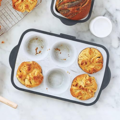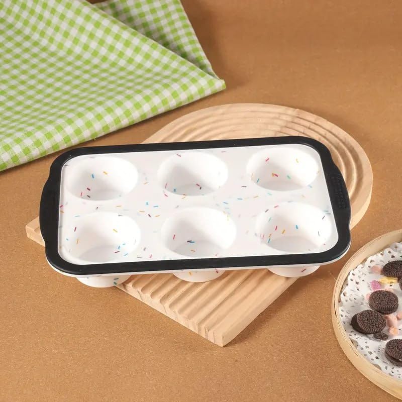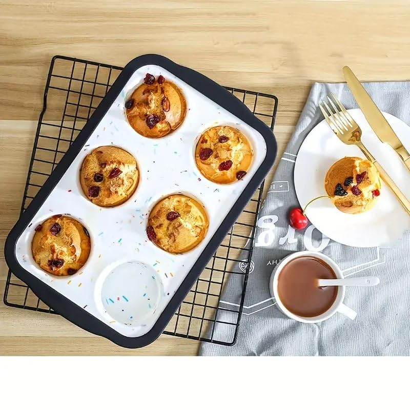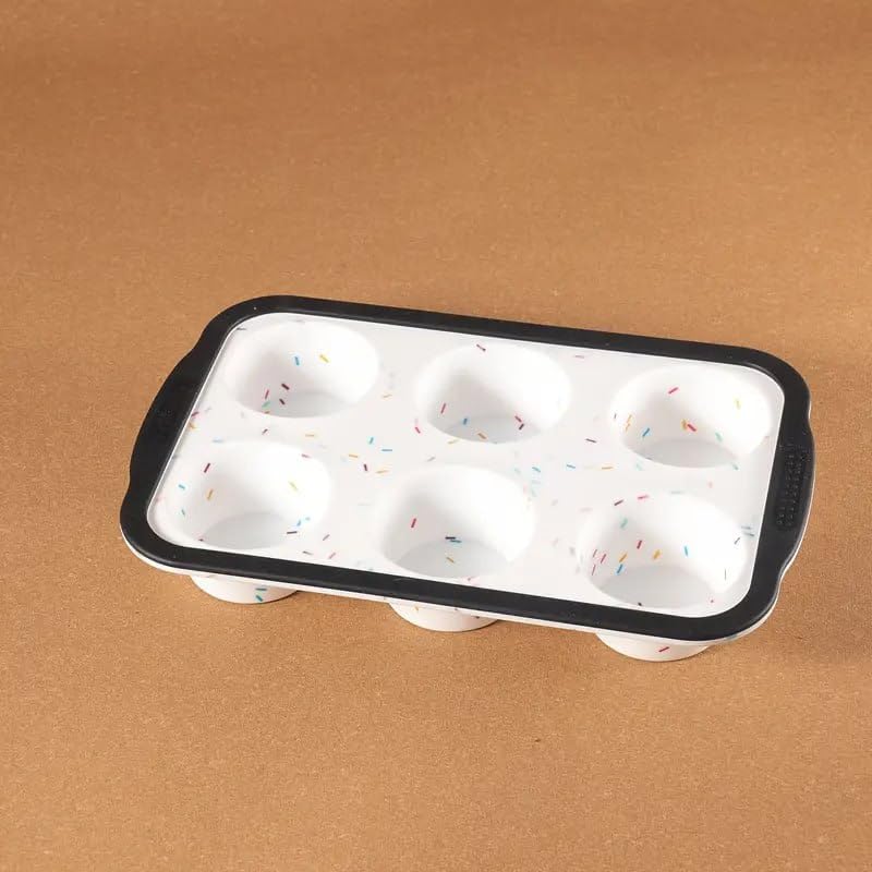 Generic - صينية سيليكون للخبز، قالب مافن بـ ٦ فتحات، أبيض ورمادي