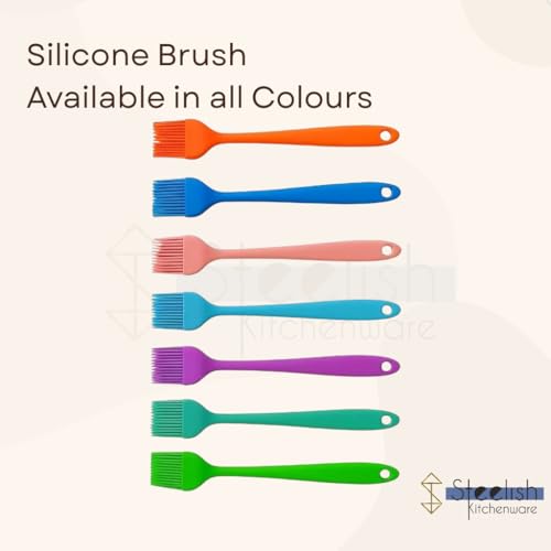 Steelish - فرش مطبخ سيليكون بطول 20.3 سم، فرشاة دهن بشعيرات سيليكون، فرشاة معجنات لتوزيع الزيت للمطبخ، قطعة واحدة، ألوان حسب التوافر