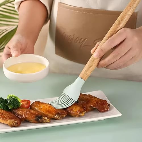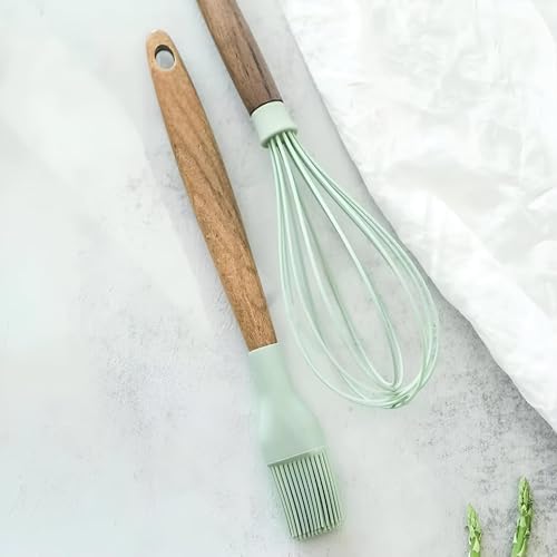Generic - مضرب سيليكون - مجموعة مطبخ فاخرة غير لاصقة بمقابض خشبية مكونة من 3 قطع اساسية تتضمن ملعقة ومضرب وفرشاة لتسهيل الطبخ والتنظيف بسهولة واقصى قدر من الراحة