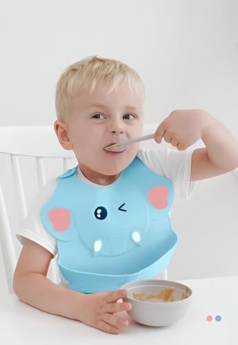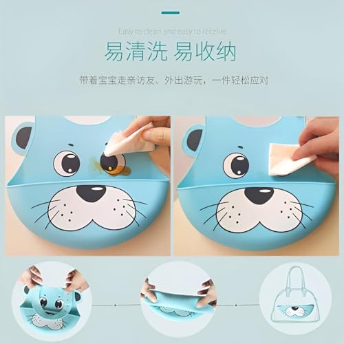 Generic - مريلة سيليكون للأطفال مقاومة للماء وتحتوي على جيب لالتقاط الطعام | الحل الأمثل لإطعام الأطفال الصغار والرضع متوفر بألوان وأشكال مختلفة