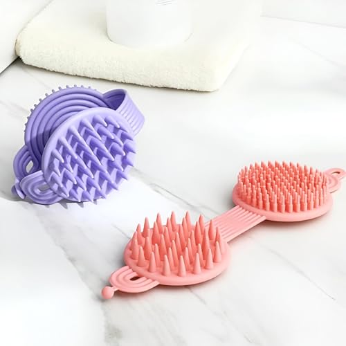 Generic - مقشر الجسم المصنوع من السيليكون - فرشاة استحمام وشامبو 2 في 1 مع سيليكون ناعم مزدوج الجوانب، يساعد في تقشير البشرة الحساسة بشكل لطيف ويوفر رغوة غنية وشعوراً بالانتعاش (2 قطعه)