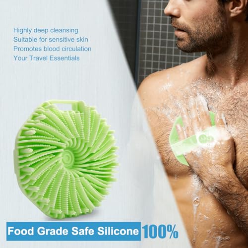 WETANG - مقشر الجسم من السيليكون، مع مقبض غير قابل للانزلاق لسهولة التنظيف، مناسب للسفر (أخضر)