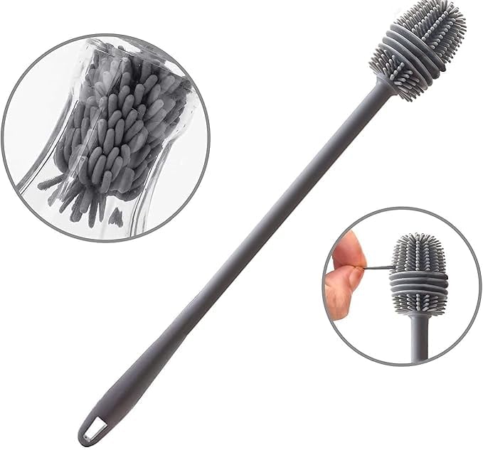 Generic - فرشاة زجاجات مقاومة للخدش والحرارة وخالية من بيسفينول أ مصنوعة من السيليكون بمقبض طويل بتصميم قابل لإعادة الاستخدام للترمس الحراري وزجاجة المياه والأواني الزجاجية والببرونات والأكواب، عبوة من قطعتين