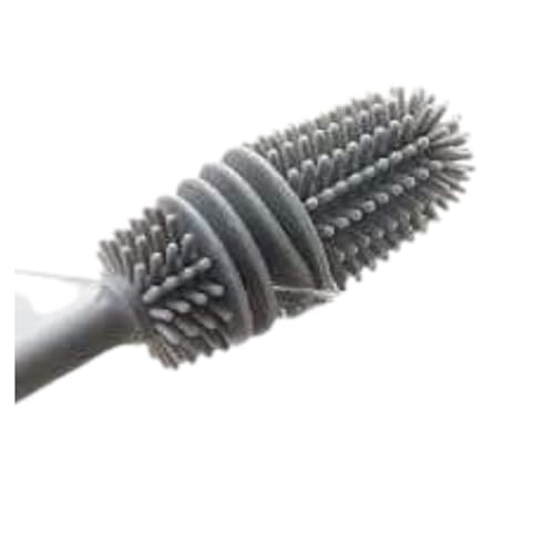 DRaX - فرشاة تنظيف الزجاجات من السيليكون، مقبض طويل بشعيرات مرنة، رمادي