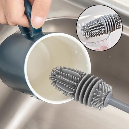 Generic - فرشاة تنظيف الزجاجات من السيليكون بمقبض طويل - لتنظيف ببرونات وزجاجات الأطفال