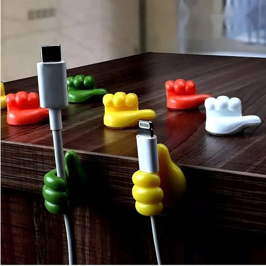 - التصميم: منظمات كابلات لطيفة على شكل يد بألوان نابضة بالحياة (أحمر وأصفر وأخضر وأبيض) للحفاظ على الأسلاك مرتبة ومنظمة