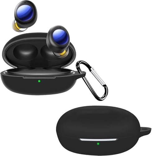 ecosystem - جراب حماية من سيليكون ناعم مضاد للصدمات مع حلقة تثبيت متوافق مع سماعات أذن ريلمي بودز Q2S (أسود)