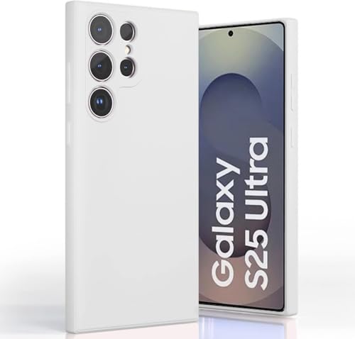 ELMO3EZZ - جراب حماية سيليكون، متوافق مع سامسونج جالاكسي S25 الترا، جراب من السيليكون السائل، جراب حماية كامل الهيكل، مضاد للصدمات، جراب موبايل رفيع، مضاد للخدش ببطانة ناعمة من المايكروفايبر، لون (أبيض)