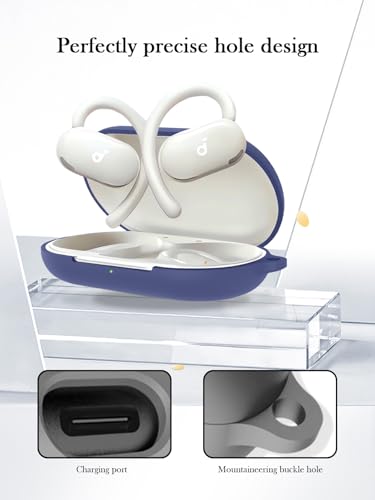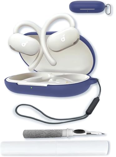 BOVUGAC - جراب سيليكون متوافق مع سماعات ساوند كور V20i مع سلسلة مفاتيح، طقم تنظيف وحبل قصير، غطاء واقي ناعم مضاد للصدمات لسماعات انكر ساوند كور V20i المفتوحة - أزرق من انكر