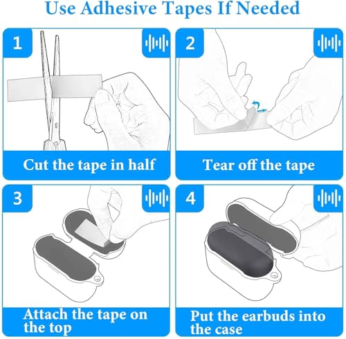 - شرائط لاصقة بالداخل لملاءمة أكثر أمانًا. محمول مع خطاف سلسلة مفاتيح. فتحة خاصة لشحن سماعات الأذن الخاصة بك دون إزالة الغطاء.