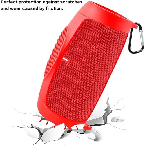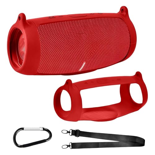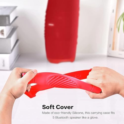 PAIYULE - جراب سيليكون لمكبر صوت بلوتوث محمول جيه بي ال تشارج 5، جل ناعم للسفر، جراب حمل مطاطي مقاوم للماء مع حزام (احمر)