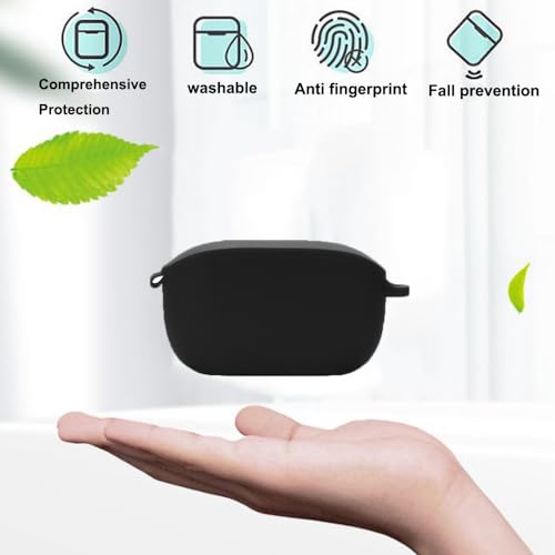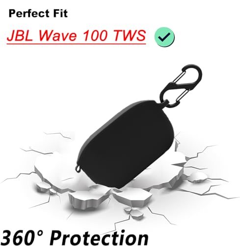 BIIULHCI - حافظة من السيليكون لجهاز جيه بي ال ويف 100 تي دبليو اس، حافظة واقية مضادة للصدمات وغطاء حماية من الجلد لجهاز جيه بي ال ويف 100TWS مع سلسلة مفاتيح (اسود)