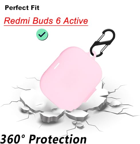 BIIULHCI - حافظة حماية سيليكون مضادة للصدمات بغطاء حماية جلد لسماعات ريدمي بودز 6 اكتيف مع سلسلة مفاتيح (لون وردي)