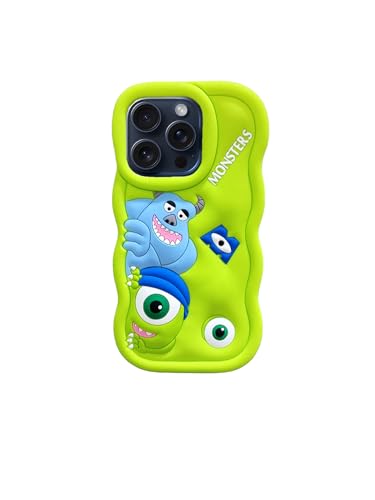 ELMO3EZZ - جراب سيليكون ببطانة من المايكروفايبر بأشكال ثلاثية الأبعاد جميلة لموبايل آبل آيفون 11 برو، (مصمم برسومات كرتون مونستر) (لون أخضر)