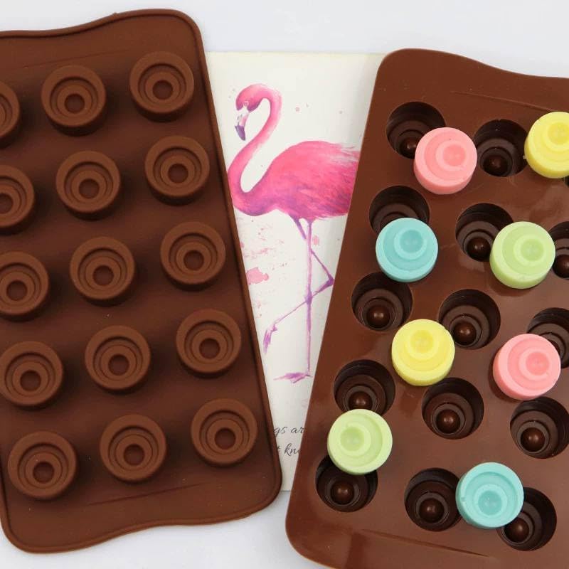 Generic - قالب للشوكولاتة والجيلي سيليكون قطعه، تصميم دوائر متعددة، بني