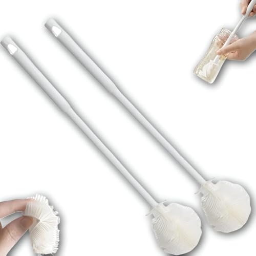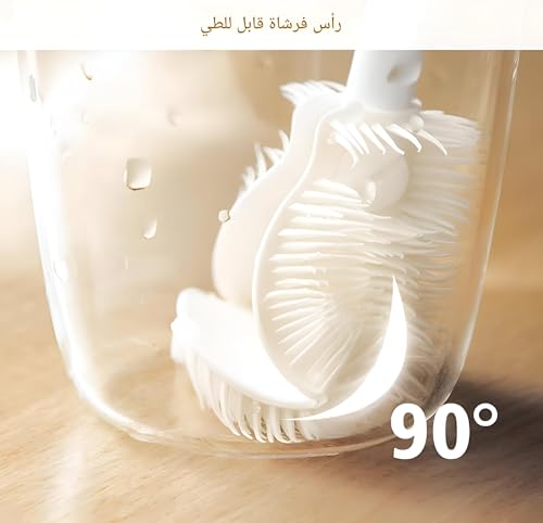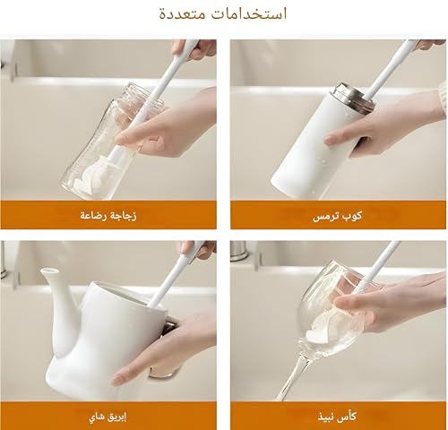Generic - فرشاة تنظيف سيليكون - نقدم لكم فرشاة أكواب مرنة تدور 360 درجة، مثالية لزجاجات المياه ذات اليد الطويلة والأوعية ذات الأشكال الفريدة (قطعتان)